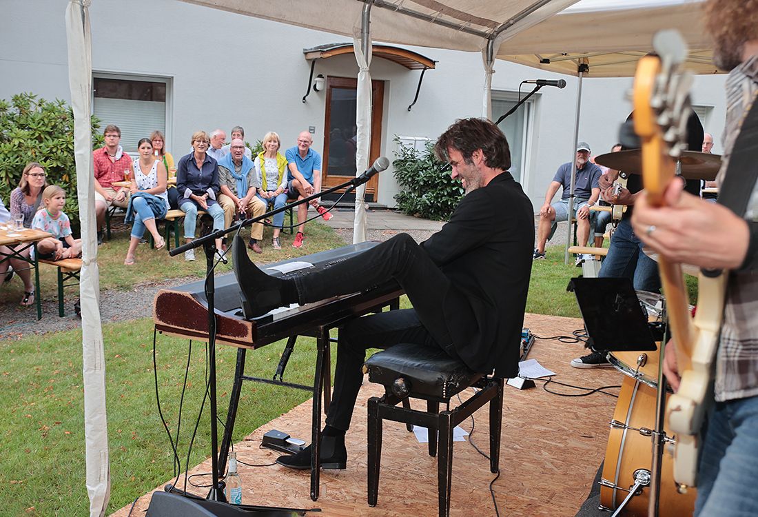 Von Beatles-Songs wie „Lady Madonna“ oder „Your Song“ von Elton John ließen sich die rund 150 Gäste genauso berauschen wie vom übrigen Repertoire: einem Mix aus der Popmusik der 1950er Jahre bis heute und eigenen deutschsprachigen Liedern. „Deshalb bin ich wie ein Held für euch“, lautet es in seinem ganz persönlichen Song „Held“. „Ich finde das richtig klasse hier“, so der Pianist und Sänger. „Man merkt, dass die Leute nach so langer Zeit wieder richtig Lust auf Livemusik haben. Zudem habe ich das Gefühl, dass die Gäste viel Sensibilität uns Künstlern und der Livemusik entgegenbringen. Dies empfinde ich uns und der Musik gegenüber als Aufwertung.“
