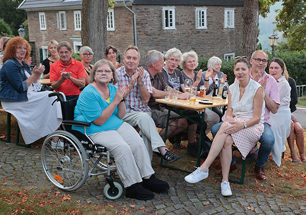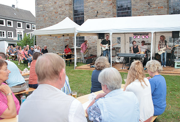 Das fanden auch die Gäste. „Ich freue mich, dass hier in dem kleinen Örtchen sowas mal wieder möglich ist“, so Vera Zielberg von der AggerEnergie, die gemeinsam mit Freunden auf einer Radtour zufällig vorbeigekommen war. „Hier ist richtig was los. Wir genießen diesen großartigen Sommerabend. Danke an Hülsenbusch und an die Band.“