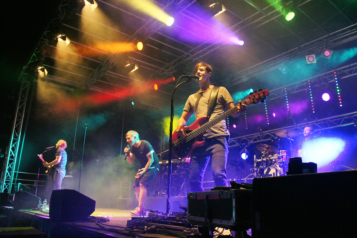 Die „Klüngelköpp“, die als zweite Band die Bühne rockte, gehört mittlerweile zu den bekanntesten kölschen Gruppen. Als gegen 20 Uhr die Paveier auf die Bretter stiegen, war es immer noch sehr heiß. Die Musiker sangen mit Sonnenbrille, denn die Sonne schien inzwischen frontal auf die Bühne. „Eigentlich wollten wir nie mit Sonnenbrille singen, aber heute geht es nicht anders“, lachte Frontsänger Sven Welter. Die Lieder, die den Besuchern auch aus dem Karneval bestens bekannt waren, wurden laut mitgesungen und die Stimmung war auf dem Höhepunkt, als das Lied „Leev Marie“ gespielt wurde. Die Gruppe „Lupo“ dagegen ist ein fast noch ein „Newcomer“, aber mit ihren Songs können die fünf Musiker mit den etablieren Bands absolut mithalten.