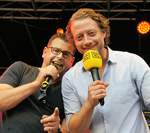 [Moderatorenduo Markus Günter und Basti Wirtz hatten die Menge im Griff.]