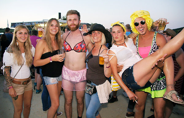 [Die Outfits der Besucher wurden den Temperaturen von über 30 Grad entsprechend angepasst.]