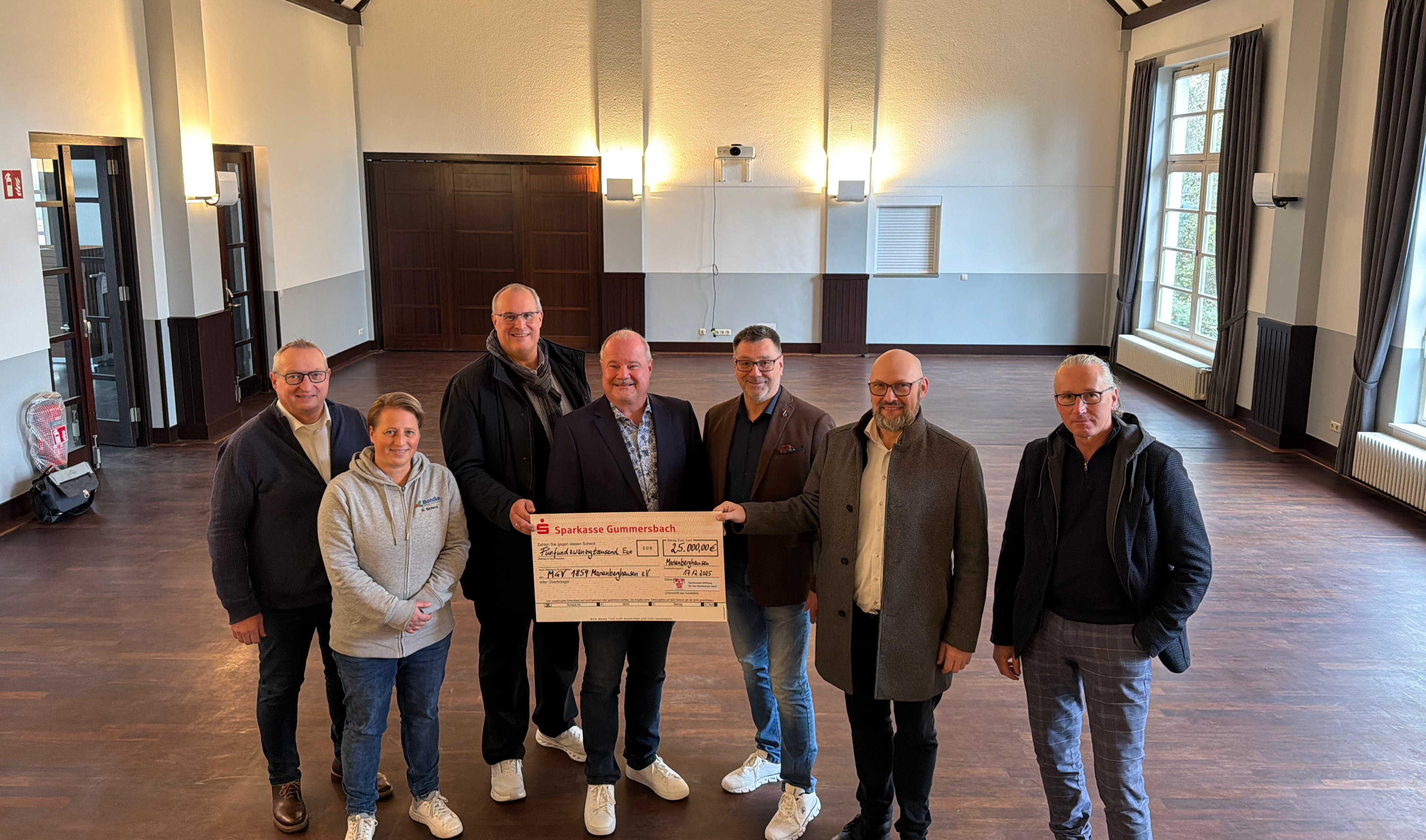 Dirk Steinbach, designierter Vorstandsvorsitzender der Sparkasse Gummersbach, hatte heute einen Scheck über 25.000 Euro von der Sparkassenstiftung in der Tasche. Das Geld ist für die Renovierung des Veranstaltungssaals des Dorfgemeinschaftshauses in Nümbrecht-Marienberghausen bestimmt, wo in den vergangenen vier Wochen umfangreiche Malerarbeiten der Firma Bondke stattgefunden haben. Der etwa 30 Jahre alte Anstrich hatte seine besten Zeiten hinter sich, sodass Decke und Wände nun in frischer Farbe erstrahlen. Außerdem wurden die Bühnen- und Seitenvorhänge durch den Raumausstatter Markus Kutz erneuert.