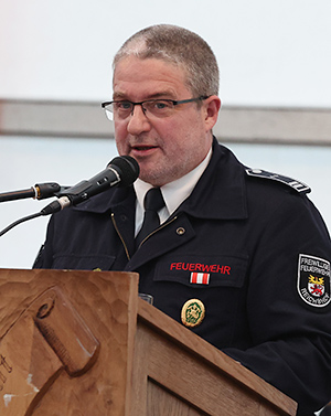 [Löschzugführer Georg Neumann blickt stolz auf 125 Jahre Kameradschaft zurück.]