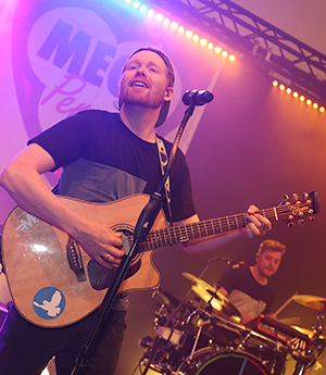 [Miljö-Gitarrist Nils Schneider wusste genau, wie er mit der Feiermeute kommunizieren muss.]