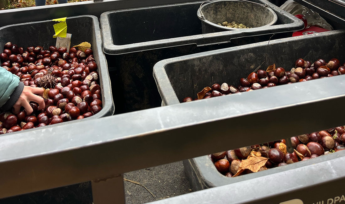 Die gesammelten Früchte werden nun sukzessive an Tiere verfüttert und erweitern den Speiseplan bis Ende Januar. Interessant zu wissen ist, dass Wildschweine sich eher über Eicheln freuen, daher wurden neben Kastanien, auch diese gerne entgegengenommen, so die FSW. Aufgrund des großen Erfolges soll die Kastaniensammelaktion im kommenden Jahr wiederholt werden.