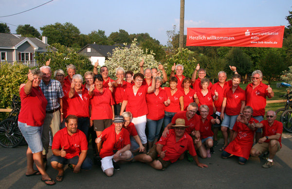 [„Die Hahner“ der Dorfgemeinschaft Hahn versorgten die Sportler an ihrer Raststation mit erfrischenden Getränken und sensationell leckeren Reibekuchen.]