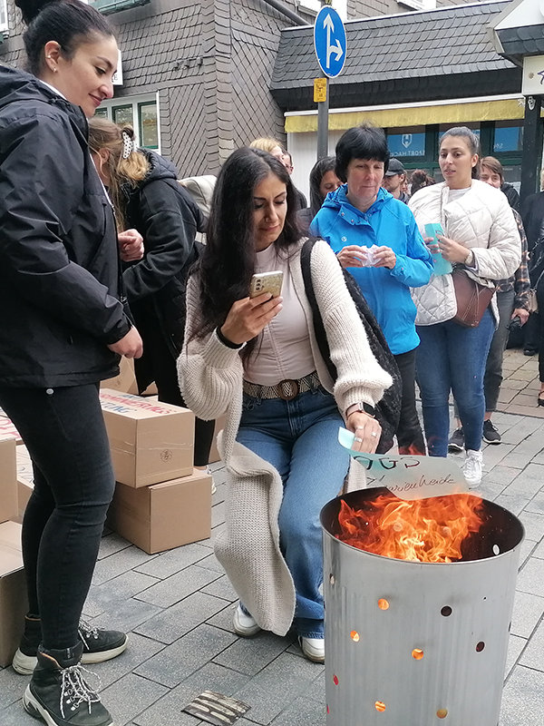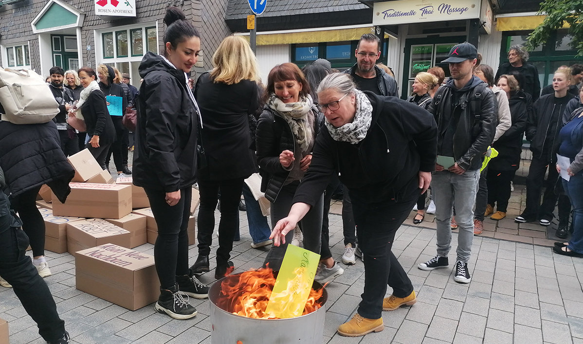 Veranstaltet wurde die Demonstration im Rahmen der landesweiten Kampagne „Black Week“ der LAG Freie Wohlfahrtspflege NRW, die in dieser Woche stattgefunden hat. Initiiert wurde sie von Mitarbeitern der Caritas. Nach dem Trauerzug versammelten sich die Demonstrierenden vor dem Treffpunkt „Mittendrin“, wo eine Mauer bestehend aus den „Bausteinen der Sozialen Arbeit“ symbolisch durch eine Abrissbirne zum Umsturz gebracht worden ist. Außerdem verbrannten die Teilnehmer Blätter, auf denen sie zuvor ihr jeweiliges Arbeitsgebiet geschrieben hatten. „Die soziale Infrastruktur bildet das Rückgrat der Gesellschaft“, sagte Rothausen. „Diese Missstände können und dürfen wir nicht länger hinnehmen.“