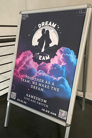 Noch eine knappe Woche haben Studierende der TH Köln am Campus Gummersbach Zeit, an ihrer Spielshow „Dream ITeam“ zu feilen. Seit Beginn des Wintersemesters arbeiten sie daran, die Show zusammen auf die Beine zu stellen. Ursprünglich sei geplant gewesen, in der Spielshow ein Professoren-Team gegen Wissenschaftliche Mitarbeiter antreten zu lassen – und ja, Prof. Dr. Irma Lindt und Prof. Christian Noss sollen bereits gesetzt sein, doch gegen wen die beiden in der Spielshow antreten werden, steht wohl wenige Tage vor dem Livestream noch nicht fest.