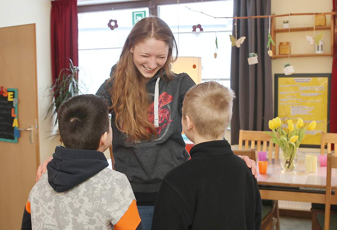 Die Kinder wecken und gemeinsam essen, bei den Hausaufgaben helfen, rumalbern, Fingernägel schneiden oder auch mal in den Arm nehmen und trösten: Neben der pädagogischen Arbeit gehören auch ganz alltägliche Aufgaben zu dem Arbeitsalltag der Erzieher. „Wir bieten den Kindern ein Zuhause und eine Familie, auch wenn sie zu ihren Eltern teilweise Kontakt haben. Dieses Zuhause, das ihnen Geborgenheit und eine entspannte Atmosphäre bietet, möchten wir unbedingt erhalten“, sagt Klement, die sich innerhalb eines achtköpfigen Teams um die Kinder in ihrer intensiv-therapeutischen Wohngruppe kümmert.