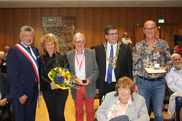 „Jetzt ist auch der Zeitpunkt für die Würdigung der stillen Stars, die nicht so in der ersten Reihe stehen“, leitete Frank Helmenstein zur Auszeichnung von Ehrenamtlichen über, ohne deren städtepartnerschaftliches und bürgerschaftliches Engagement gesellschaftliches Miteinander nicht gelingen könne. Mit der silbernen Stadtmedaille bedankte sich der erste Bürger Gummersbachs bei Gertrud Häring (Multitaskerin im Partnerschaftsverein amico), Dominique Pauvreau (Tischtennisfreunde Gummersbach /La Roche-sur-Yon, Partnerschaftsverein AEIN, Praktikantenaustausch) und Claude Guiat (Organisator verschiedener internationaler Laufveranstaltungen sowie aktiv in amico und AEIN).