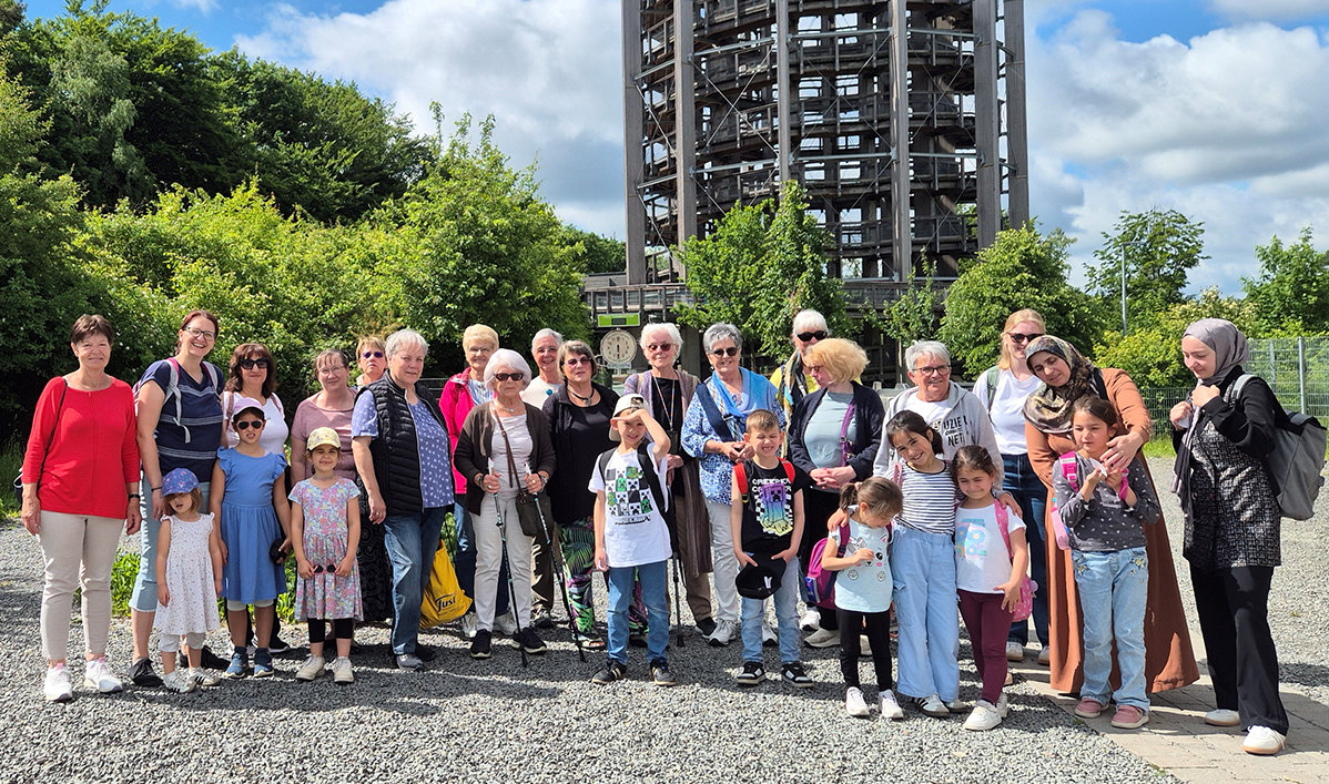 Einmal hoch hinaus zwischen die Baumkronen: das ging es laut einer Mitteilung der Stadt Bergneustadt vergangenen Freitag für die Strickfrauen des Förderkreises für Kinder, Kunst und Kultur sowie Kinder, Jugendliche und Eltern des Kinder- und Jugendtreffs. Im Rahmen des Projektes „Jung und Alt“ luden der Förderkreis und die Stadt Bergneustadt unter Leitung von Meike Krämer-Ansari zu einer gemeinsamen Bildungsfahrt in den Naturerlebnispark Panarbora ein. Nachdem zunächst der 40 Meter hohe Aussichtsturm erklommen wurde, ging es anschließend in den Baumwipfelpfad. Dort lernte die Gruppe an den interaktiven Stationen einiges über die heimischen Wälder und die tierischen Bewohner. Im Anschluss gab es ein Picknick auf dem Abenteuerspielplatz des Parks.