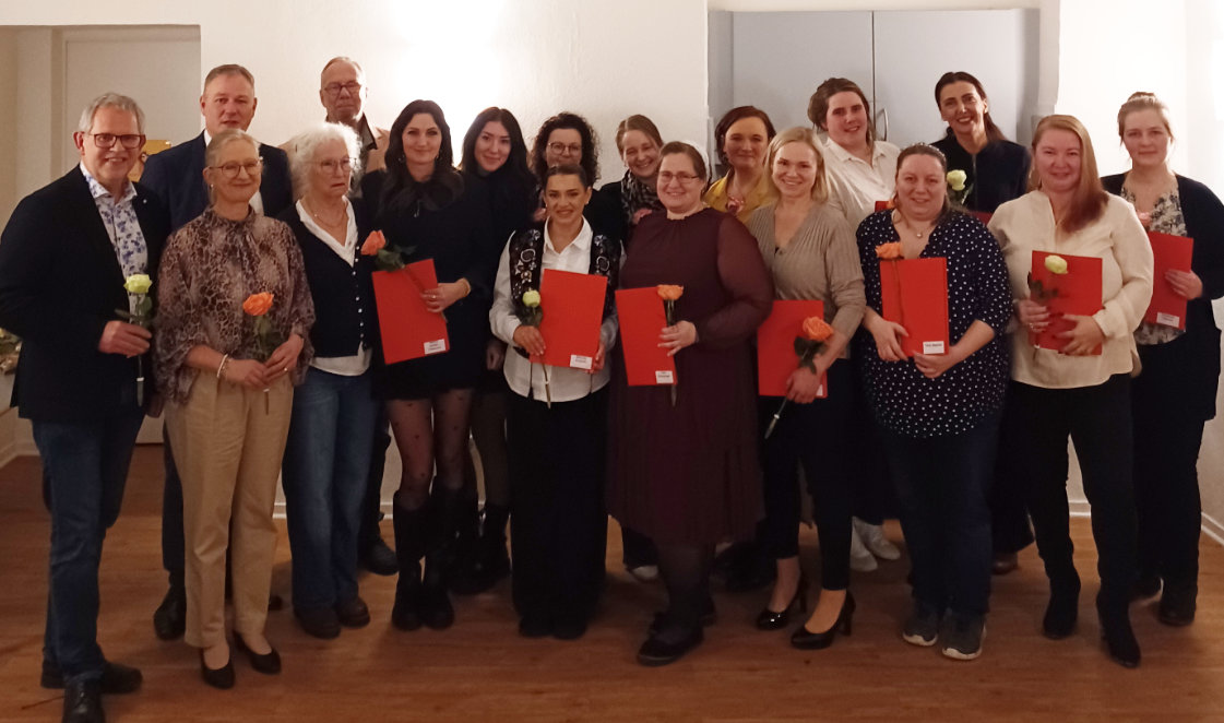 Insgesamt 24 Frauen und Männer haben in den vergangenen anderthalb Jahren die Qualifizierung zur Kindertagespflege erfolgreich abgeschlossen und ihre Prüfungen bestanden. In der Katholischen Familienbildungsstätte Wipperfürth erhielten sie nun das Zertifikat „Qualifizierte Tagespflegeperson“.