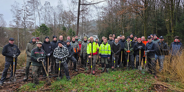 Wiehl - Mitarbeiter der Firma Kampf wollen dem Wald wieder auf die Beine helfen - Dafür wurden 1.000 Setzlinge in Faulmert eingepflanzt.