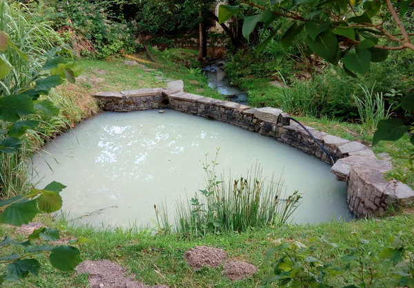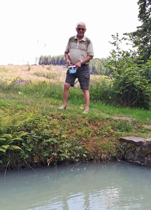 Das Paar ist besorgt. Seit 1976 leben die Peuckers in dem Haus in der Gummersbacher Ortschaft Frömmersbach. Den Teich legten sie noch in den 1970er Jahren an. Gespeist wird er vom Wasser eines Bachlaufes, das zum einen vom Unnenberg hinabfließt und zum anderen aus dem Steinbruchteich oberhalb der Ortschaft stamme. Verschmutzungen habe es in all den Jahren immer wieder gegeben: so sei das Wasser bei starkem Regen sehr aufgewühlt, im Winter öfter schlammig und auch Jauche sei schon in den Teich gespült worden. „Aber nach eineinhalb bis zwei Tagen ist der Bach wieder klar“, erzählt Karin Peucker – normalerweise.