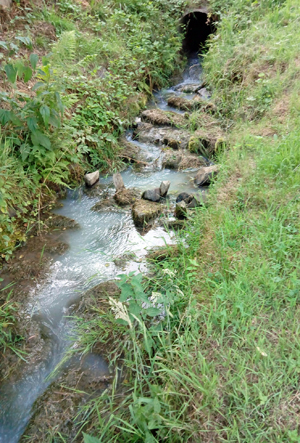 [Die Verunreinigung des Wassers ist auch im Bachlauf zu erkennen.]
