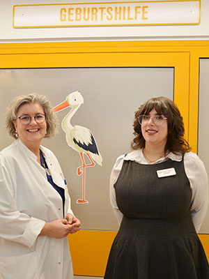 [Vergangenes Jahr gab es in der Geburtsklinik 1.062 Geburten. Nun hoffen Dr. Anja Weishap (l.) und Sofia Mazzarelli, dass es in diesem Jahr 50 Geburten im hebammengeleiteten Kreißsaal geben wird – mindestens.]
