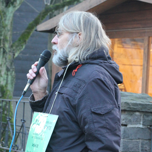 [Gerhard Jenders begrüßte alle Teilnehmer zu der Aktion vor der Alten Vogtei.]