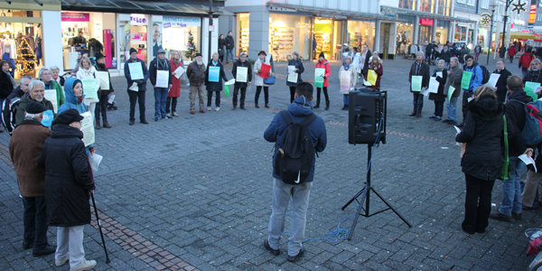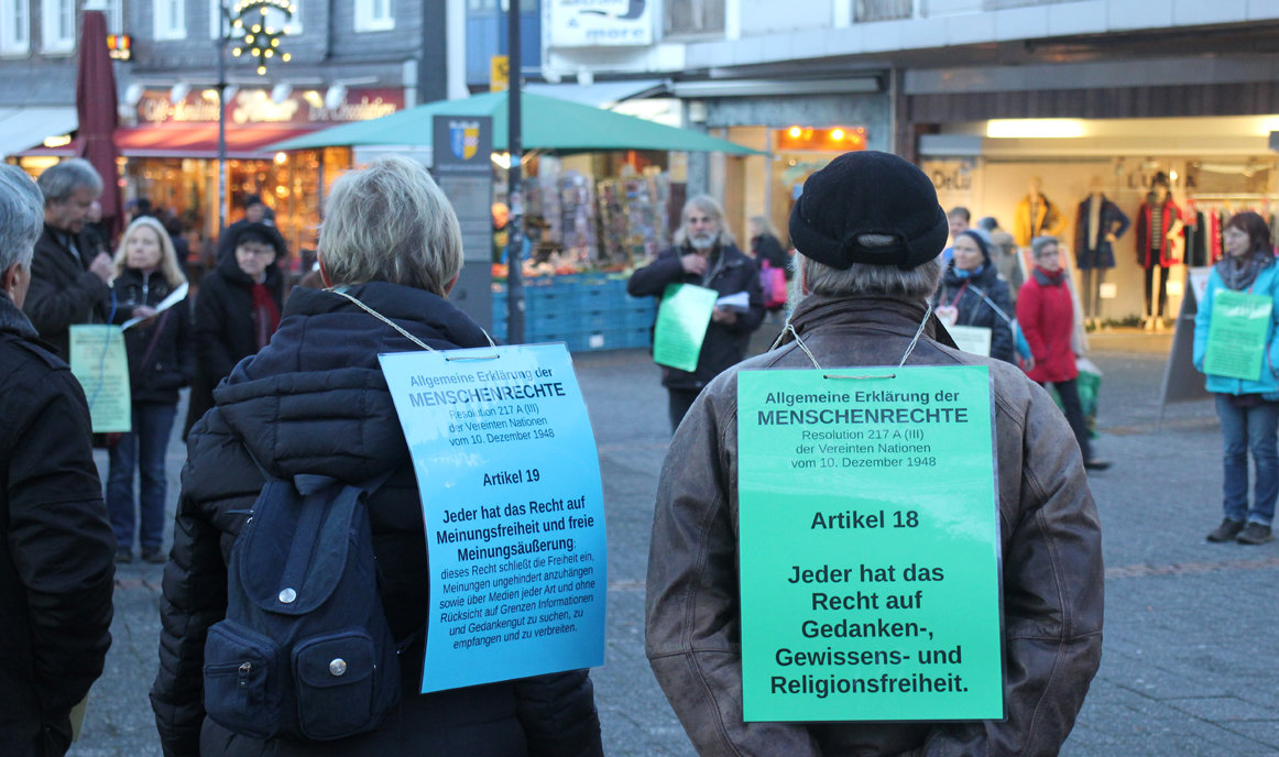 Gummersbach – Vertreter aller im Stadtrat vertretenen Parteien und einiger Organisationen verlasen zum Tag der Menschenrechte alle Artikel in der Gummersbacher Fußgängerzone.