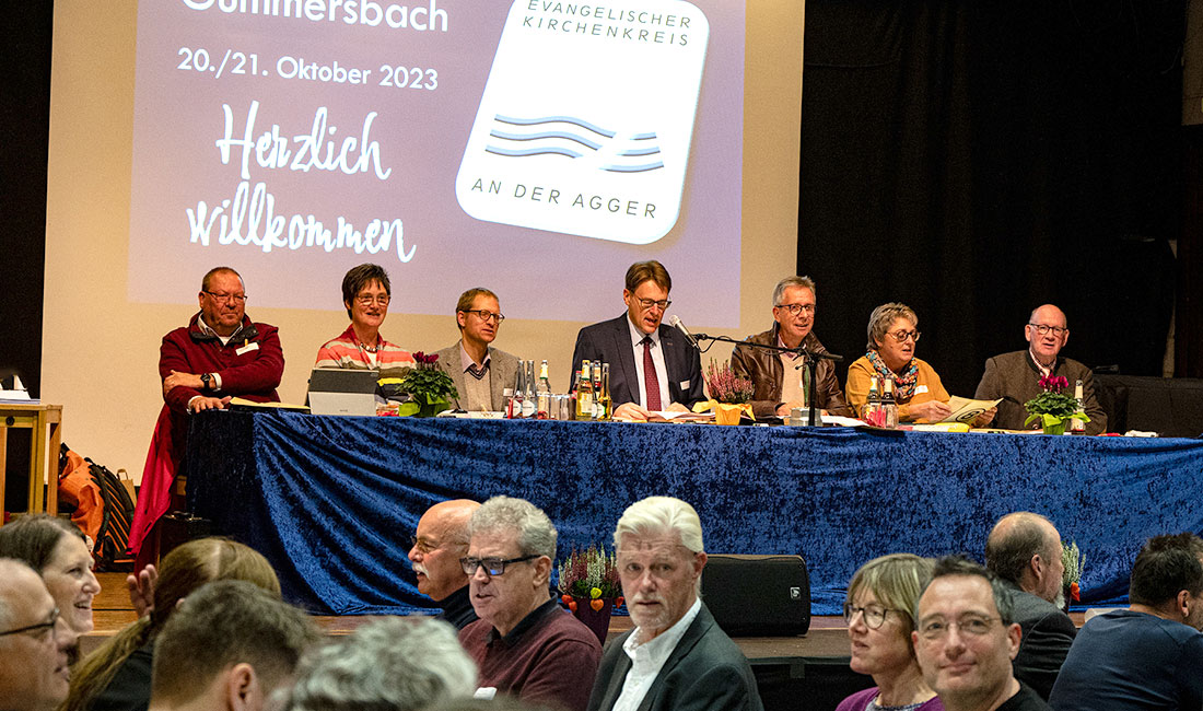 Die Synode des Kirchenkreises An der Agger hat sich am Wochenende zu ihrer Herbsttagung im evangelischen Gemeindehaus Gummersbach getroffen. Der Glaube selbst, Beschlüsse unter anderem zur Diakoniesatzung, aber auch die Situation in Israel waren Themen bei dem Treffen am Freitagabend und Samstag.