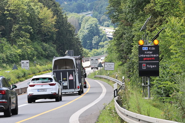 [Vor der Wiehltalbrücke wurden die Fahrer über die eingerichtete Umleitung informiert.]