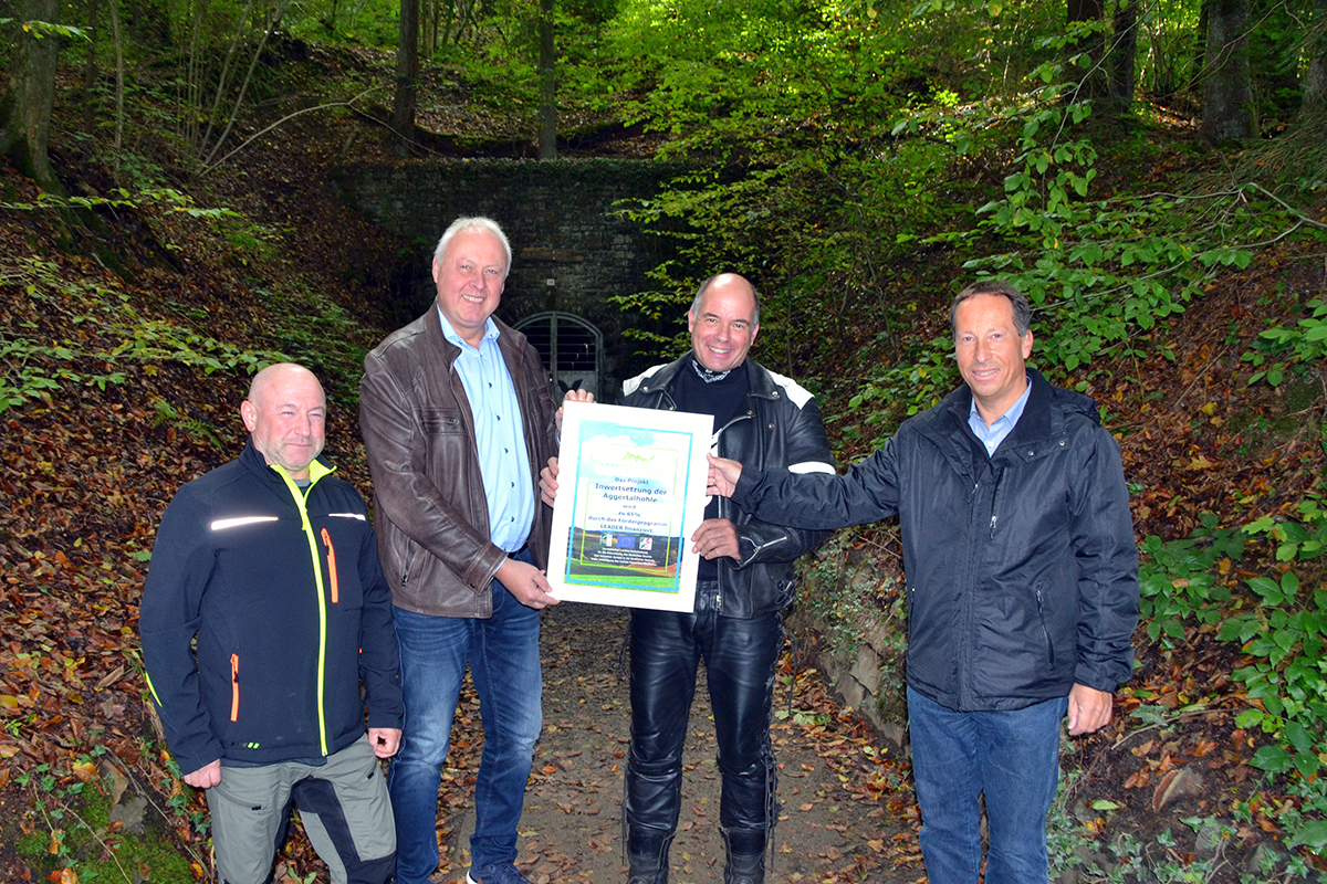 Dr. Gero Karthaus hofft, dass die Inwertsetzung der Aggertalhöhle nur der erste Schritt zum künftigen Höhlenerlebniszentrum ist: „Diese versteinerten Strukturen freizulegen ist sensationell. Wir haben hier einen echten Mehrwert und hoffen, weitere Fördermittel des Landes einwerben zu können.“ Die LEADER-Förderung für das aktuelle Projekt beträgt 169.760,20 Euro, das Gesamtvolumen liegt bei 261.169,55 Euro. „Als wir den Antrag für dieses Projekt auf dem Tisch hatten, kam echte Begeisterung bei uns auf“, sagt Frank Herhaus, Vorsitzender des Trägervereins der LEADER-Region Oberberg. Mit der Umsetzung werden die Ziele des Handlungfeld 2 „Regionale Attraktivität“ sowie des Handlungsfeld 1 „Lernen in der Region“ der LEADER-Region Oberberg erfüllt. Für die nächste Förderperiode beim NRW-Ministerium werden bereits die Anträge erarbeitet. „Wir sind zuversichtlich uns wieder erfolgreich zu bewerben“, so Herhaus.