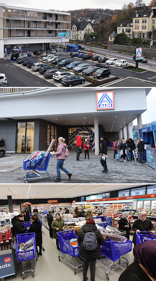 Bergneustadt - Nach der Verlagerung vom alten Standort Henneweide präsentiert sich die neue Aldi-Filiale im Stadtzentrum ab heute mit größerer Verkaufsfläche.