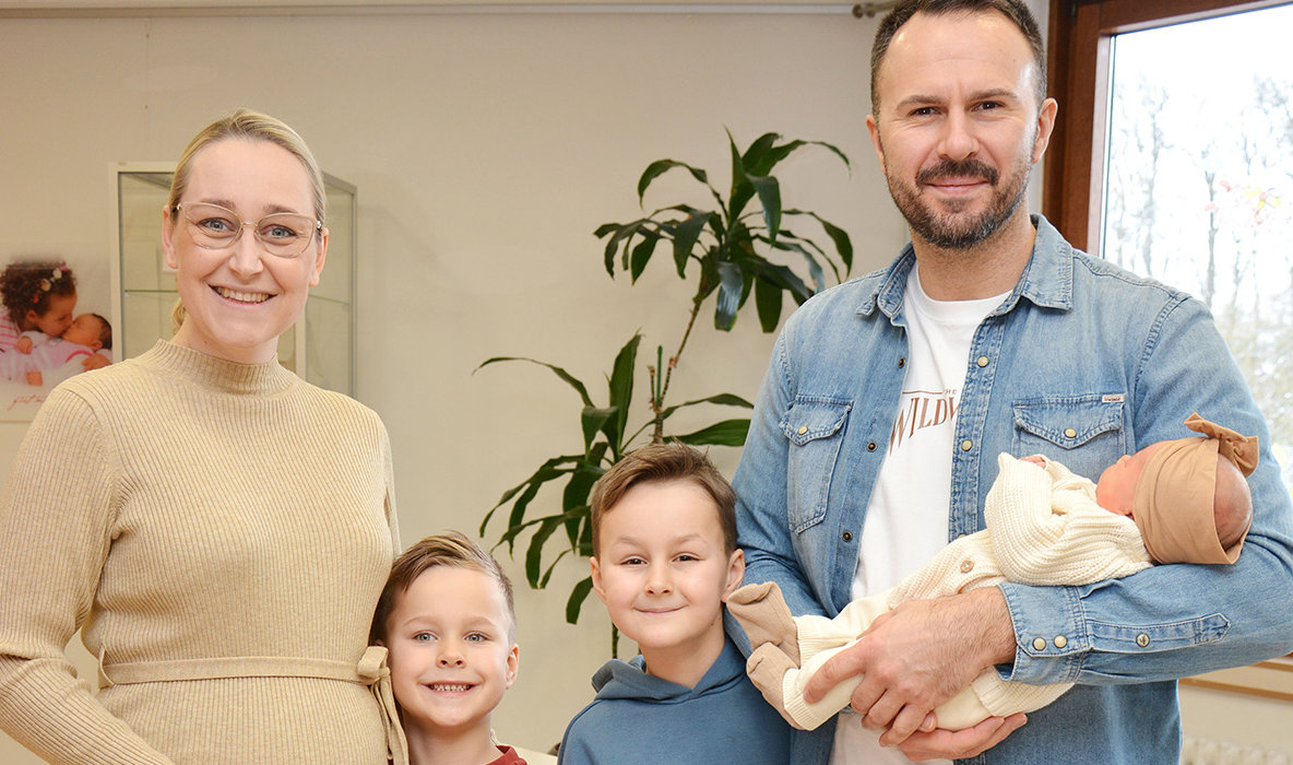 Am 1. Januar um 17:57 Uhr hat die kleine Amalia als erstes Kind im neuen Jahr im Kreiskrankenhaus Gummersbach das Licht der Welt erblickt. Amalia ist das dritte Kind von Katharina und Johannes Schneider. Sie wurde von ihren großen Brüdern Josua (5) und Alexander (7) auf der Wöchnerinnenstation abgeholt, heißt es in der Mitteilung des Klinikums.