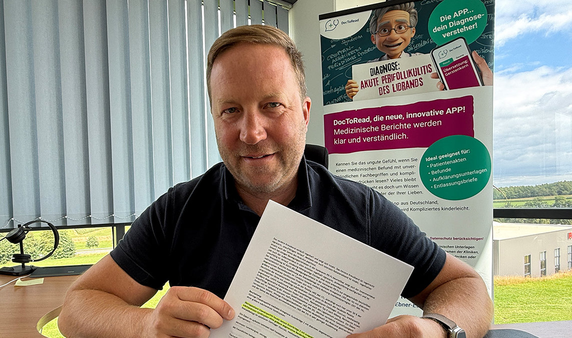 Mit „DocToRead“ hat Bastian Hollmann eine App entwickelt, die für den Laien oft komplizierte Arztbriefe in verständliche Sprache umwandelt. Der Müllenbacher bediente sich bei der Entwicklung mehrerer KI-Modelle, die verständliche Ergebnisse für den Nutzer liefern. Hollmann erlernte einst den Beruf des Medizinischen Technologen für Radiologie (MTR) am Kreiskrankenhaus Gummersbach, ehe er sich auf die Vermarktung medizinischer Produkte spezialisierte und durch seine Vertriebstätigkeit weltweite Kontakte knüpfte.