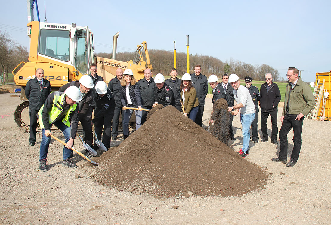 Die Einheit Thierseifen hat es schon, für die Einheit Geilenkausen befindet sich die Stadt in der Planungsphase, bei der Einheit Heide beginnen nun die Bauarbeiten: Der Brandschutzbedarfsplan hatte für diese Einheiten klare Ziele formuliert, die nun sukzessive abgearbeitet werden. Heute konnten die Verwaltungsspitze um Bürgermeisterin Larissa Weber, die Planer, der Generalunternehmer und natürlich die Kameradinnen und Kameraden der Waldbröler Feuerwehr den symbolischen ersten Spatenstich für das neue Feuerwehrgerätehaus in Heide feiern. Weit hat die Einheit es nicht von ihrem alten Stützpunkt. Dieser grenzt direkt an die Baustelle. Für den Bau auf 830 Quadratmetern Fläche nimmt die Stadt 2,7 Millionen Euro in die Hand.