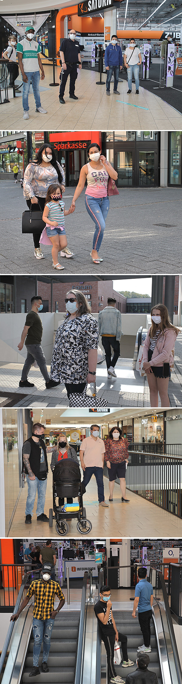 Aber es ist mitnichten so, als hätten die beiden Ordnungsamts-Mitarbeiter nichts zu tun. Am Imbiss und vor der Eisdiele wird den Hungrigen ruhig und sachlich erklärt, warum der Verzehr im 50-Meter-Umfeld nicht gestattet ist. "Man muss reden können und natürlich den neuesten Stand der Verordnungen kennen", sagt Ingrun Trippler. Insgesamt ist in den Gummersbacher Geschäften nicht besonders viel los. Das gilt auch für das "Forum". Wer hier um Einlass begehrt, kommt ohne Mundschutz nicht hinein. Die Kontrollen des hauseigenen Sicherheitsdienstes lassen keine Ausnahme zu. Allerdings - von der Pflicht der Abdeckung von Mund und Nase ausgenommen sind Menschen, die zum Beispiel als Kassiererin durch eine Abtrennung aus Plexiglas oder Glas geschützt sind, sowie Kinder, die noch nicht zur Schule gehen. Ebenso Bus- und Taxifahrer. Außerdem Menschen, die aus medizinischen Gründen keine Maske tragen und dies nachweisen können.