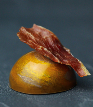 Beim „Großen Preis der Schokoladen-Sommeliers“ ist Moser mit einer herzhaft-süßen Kreation namens „Galenos“ ins Rennen gegangen. „Dabei handelt es sich um eine Interpretation des Vorspeisen-Klassikers ‚Parmaschinken und Melone‘“, schildert die 37-Jährige. Mehrere Tage habe sie an der Praline getüftelt, bis sie auch von der Textur überzeugt war. Bereits seit drei Jahren lässt sie die Praline mit einem Gelee und einer Ganache aus Honigmelone als Vorspeise in Restaurants servieren, zusammen mit einem Weißwein. „Die Praline würde man nicht zum Kaffee nehmen“, erklärt die Expertin.