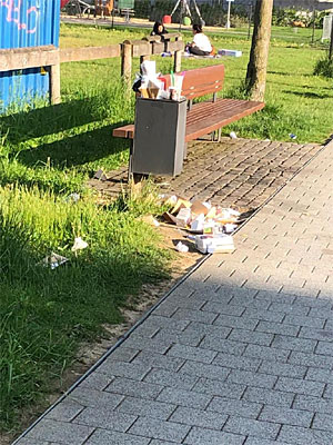größere mülleimer, oder unterbodenmülleimer wie in amsterdam könnten hier eine lösung sein.