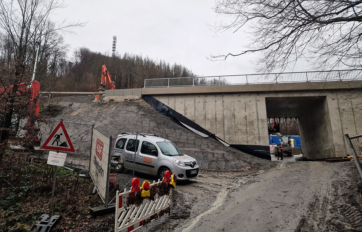 Oberberg - Bauarbeiten der neuen Luttersiefen-Brücke vor dem Abschluss - Deutsche Bahn muss Wiedereröffnung der Strecke um einen Tag verschieben.