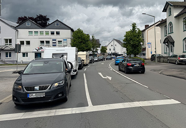 Der Verkehrsfluss von Bergneustadt nach Derschlag ist im normalen Alltagsverkehr schon gestört. Da staut es sich auch schon mal bis zum Waschplatz an der Dörspestraße. Und Kreisverkehre können die Menschen bei uns auch nicht richtig benutzen. Das sieht man jeden Tag im Zentrum von Bergneustadt, von wo es sich dann fast bis zum EDEKA zurück staut.