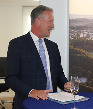 Der Bedarf sei da. „Fast 80 Prozent der Deutschen würden gerne in ihrer eigenen Immobilie leben“, so Stockhausen (Bild). Der Markt im Bergischen habe immer weiter an Bedeutung gewonnen, auch viele Städter streben zurück auf das Land. Befeuert werde dieser Trend noch durch die neu gewonnenen Home-Office-Regelungen, die ein tägliches Pendeln zum Arbeitgeber in der Stadt für viele obsolet machten. Um nachgefragten Wohnraum bieten zu können, daran würden auch Stadt und Politik arbeiten, sagte Bürgermeister Ulrich Stücker, der sich über das klare Bekenntnis der Volksbank zur Stadt und Region freute.