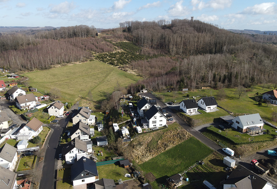 Die im Ortsteil Hackenberg geplante Klimaschutzsiedlung „Wiebusch“ wird kleiner als geplant. Ursprünglich sollten in den Verlängerungen der Straßen „Im Eichenfeld“ und „Zum Wiebusch“ zwei Bereiche mit insgesamt 33 Wohnhäusern und 20 Tiny Häusern auf einer Fläche von 28.658 Quadratmetern entstehen (OA berichtete). Am Mittwochabend stellten André Kleinpoppen, Geschäftsführer der Eikamp GbR, und Prof. Dr. Hartmut Welters vom Planungsbüro Post + Welters dem Rat der Stadt Bergneustadt den aktuellen Planungsstand des Projekts vor.