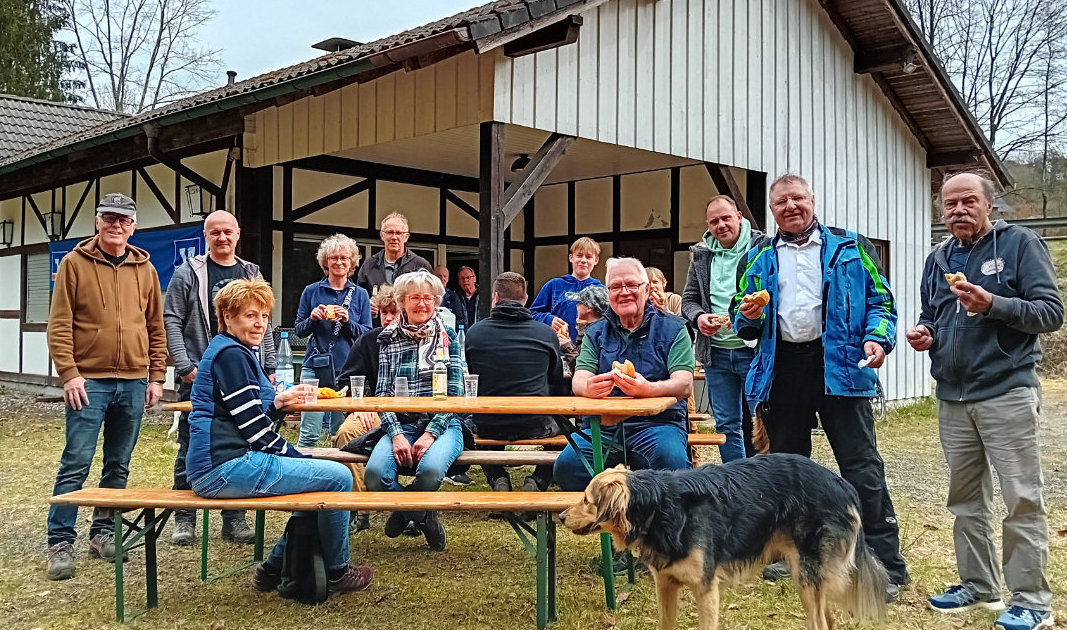 Zum traditionellen Jahresauftakt des Vereinslebens, dem Frühjahrsputz, trafen sich Vereinsmitglieder und weitere Dorfbewohner kürzlich erstmals am Schützenhaus, wo der Bergische Abfallwirtschaftsverband einen großen Müllcontainer bereitgestellt hatte. Im und rund um das Dorf sammelten die jungen und älteren Bickenbacher Unrat ein, von der Zigarettenkippe bis zum wild entsorgten Möbelstück. Danach spendierte der Verein Bratwurst und Getränke.