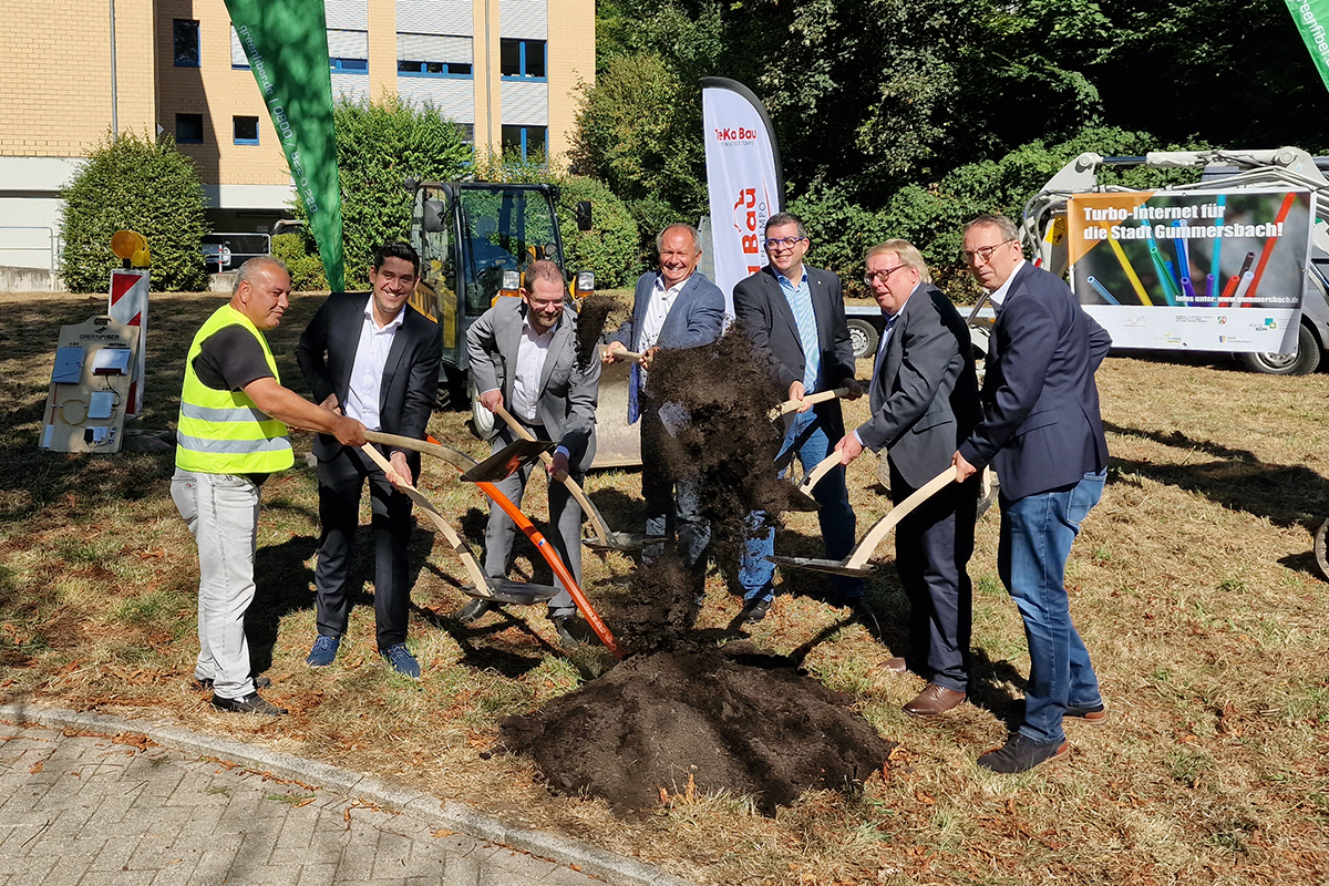 Gummersbach – Spatenstich für das Weiße-Flecken-Programm – 83 Kilometer Kabel werden verlegt – 100-Prozent-Förderung durch Land und Bund.