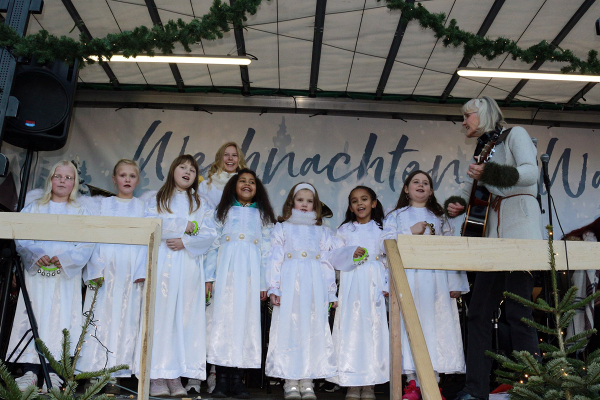 Waldbröl - Die strahlenden Engel des Eichener Engels-Chor und Christkind Letizia sangen gemeinsam das Lied „Kling Glöckchen, klingelingeling“, bevor der Weihnachtsmarkt offiziell eröffnet wurde.