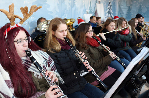 Ein Duft von Punsch, Glühwein und aromatisiertem Tee zog über den Weihnachtsmarkt. Die musikalische Weihnachtsstimmung wurde auch in diesem Jahr wieder großgeschrieben. Die Orchestergemeinschaft Legato der Musikschule gestaltete an beiden Tagen unter der Leitung von Ingo Thape das vorweihnachtliche musikalische Rahmenprogramm und brachte den Marktplatz und die Markthalle zum Klingen.