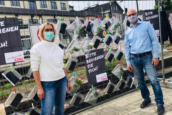 Die CDU Wiehl verteilte kürzlich 1.200 selbstgefertigte Mundschutzmasken in Wiehl. Im Stadtzentrum, Bielstein, Drabenderhöhe und Oberwiehl wurden Bauzaungitter aufgestellt und in Tüten, gefüllt mit Rosen und Masken angebracht. Passanten konnten kontaktlos den Gruß der Christdemokraten herausnehmen. Nach kurzer Zeit waren alle Rosen und Masken verschenkt.