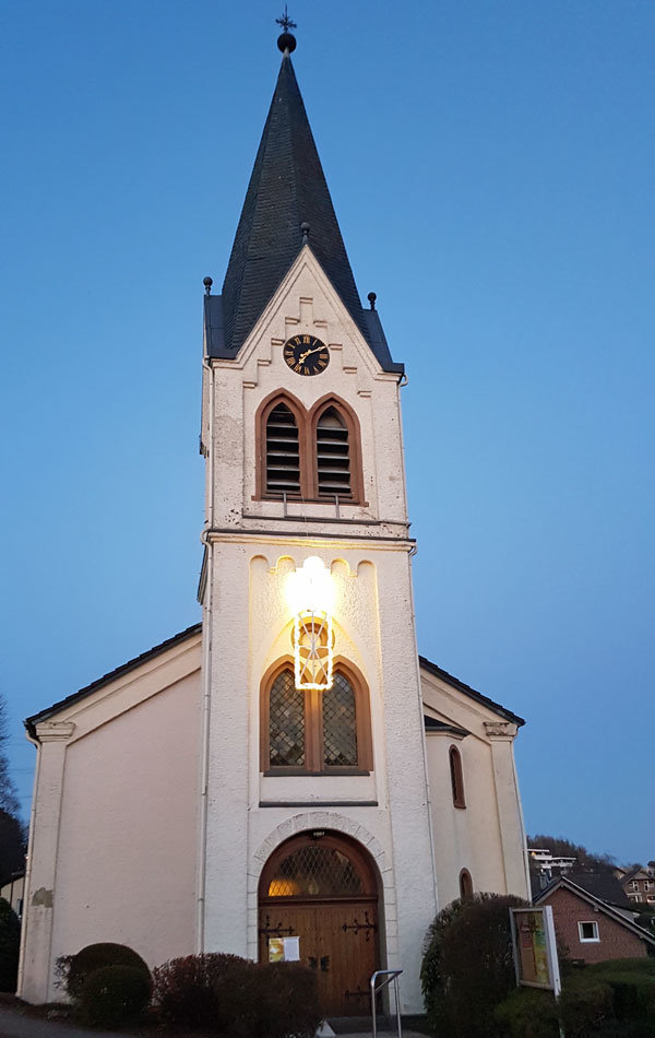 Zurzeit stellen viele Menschen Kerzen ins Fenster, um sich gegenseitig Trost zu spenden. Pfarrer Daniel Boltner und seine Frau Ute Boltner aus der Evangelischen Kirchengemeinde Oberbantenberg-Bielstein haben für den Kirchturm in Oberbantenberg eine besondere Kerze gebaut, die ab sofort an jedem Abend von 19 bis 24 Uhr leuchtet. Die Idee hatte Ute Boltner, die in der Gemeinde einen Bastelkreis leitet und für ihre kreativen Ideen bekannt ist. Daniel Boltner: "Wir hatten noch Resteisen vom Weihnachtsstern, meine Frau hat mir gesagt, wie ich das sägen und schleifen soll und dann haben wir das gestern einfach gemacht." Gestern Abend brannte sie zum ersten Mal. Daniel Boltner möchte seiner Gemeinde und allen Menschen Mut machen: "Die Kerze ist ein Zeichen der Hoffnung, als Mutmacher, als Hinweis auf Jesus Christus, der das Licht der Welt ist." Dazu gibt es heute auch eine Videobotschaft auf der Gemeinde-Homepage www.ek-oberbantenberg.de. Jeden Abend läuten wie in vielen anderen evangelischen und katholischen Gemeinden um 19:30 Uhr die Kirchenglocken.