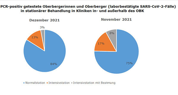 Nur 1,29 Prozent der laborbestätigten Corona-Fälle im Kreis im Dezember wurden laut Gesundheitsamt im Krankenhaus behandelt. Insgesamt waren das 46 Personen. Davon wurden 27 Personen wegen COVID-19 im Krankenhaus behandelt. Die restlichen 19 Personen suchten aus anderen Gründen das Krankenhaus auf, als dann die präventive Testung positiv ausfiel. Das Durchschnittsalter der hospitalisierten Personen lag bei 71 Jahren. Das Gesundheitsamt des Oberbergischen Kreises wertete den Impfstatus der hospitalisierten Personen aus, was jedoch aufgrund der geringen Personenanzahl und des Zeitraums nicht mit einer wissenschaftlichen Studie gleichzusetzen sei, betont Kaija Elvermann, Leiterin des Gesundheitsamts.