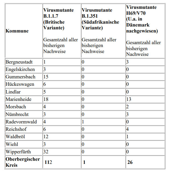 Oberberg - OA hält die Leser über die Neuigkeiten auf dem Laufenden - Ein weiterer Mensch verstorben - 32 neue Fälle seit gestern - Britische Mutante auf dem Vormarsch (AKTUALISIERT).