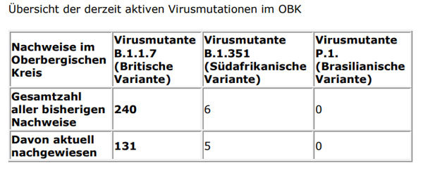 Oberberg - OA hält die Leser über die Neuigkeiten auf dem Laufenden - Inzidenzwert erneut gestiegen - Mehr als ein Drittel der momentan positiv Getesteten mit britischer Mutante infiziert (AKTUALISIERT).