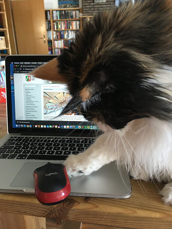 Heidrun Schmeis-Noack arbeitet zurzeit wie viele andere im Home Office, ist dabei aber nicht alleine. Ihr tierischer Begleiter hat die Computermaus ins Visier genommen und will damit offenbar signalisieren, dass es an der Zeit ist, eine kurze Pause einzulegen.