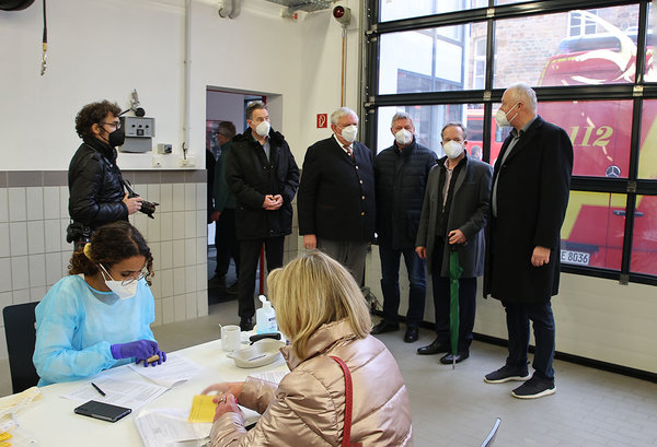 [Foto: Michael Kleinjung --- NRW-Gesundheitsminister Karl-Josef Laumann besuchte die Impfaktion bei der Feuerwehr Ründeroth.]