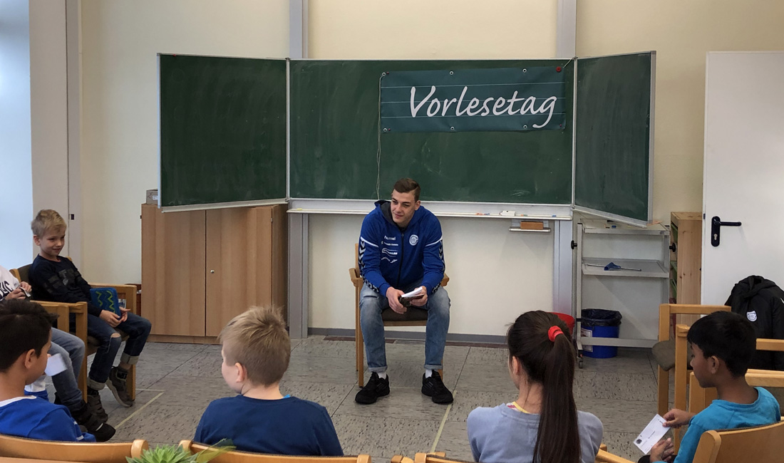 In Kooperation mit der Regionaldirektion Oberberg der AOK Rheinland/Hamburg und dem VfL Gummersbach waren die Profihandballer des oberbergischen Traditionsverein in den vergangenen Jahren schon häufiger zu Besuch in der Schule. Die bundesweite Vorleseaktionen wurde von "Die Zeit", Stiftung Lesen und der Deutschen Bahn initiiert, um öffentlich auf das Vorlesen aufmerksam zu machen. "Unmittelbar nach der Aktion merken wir, dass sich die Kinder vermehrt für unsere eigene Bibliothek interessieren", so Heupel. Nach dem Ende der Lesung gibt es für die Kinder noch Autogramme des Zweitligaspielers. Das Werk wandert in die schuleigene Bibliothek.