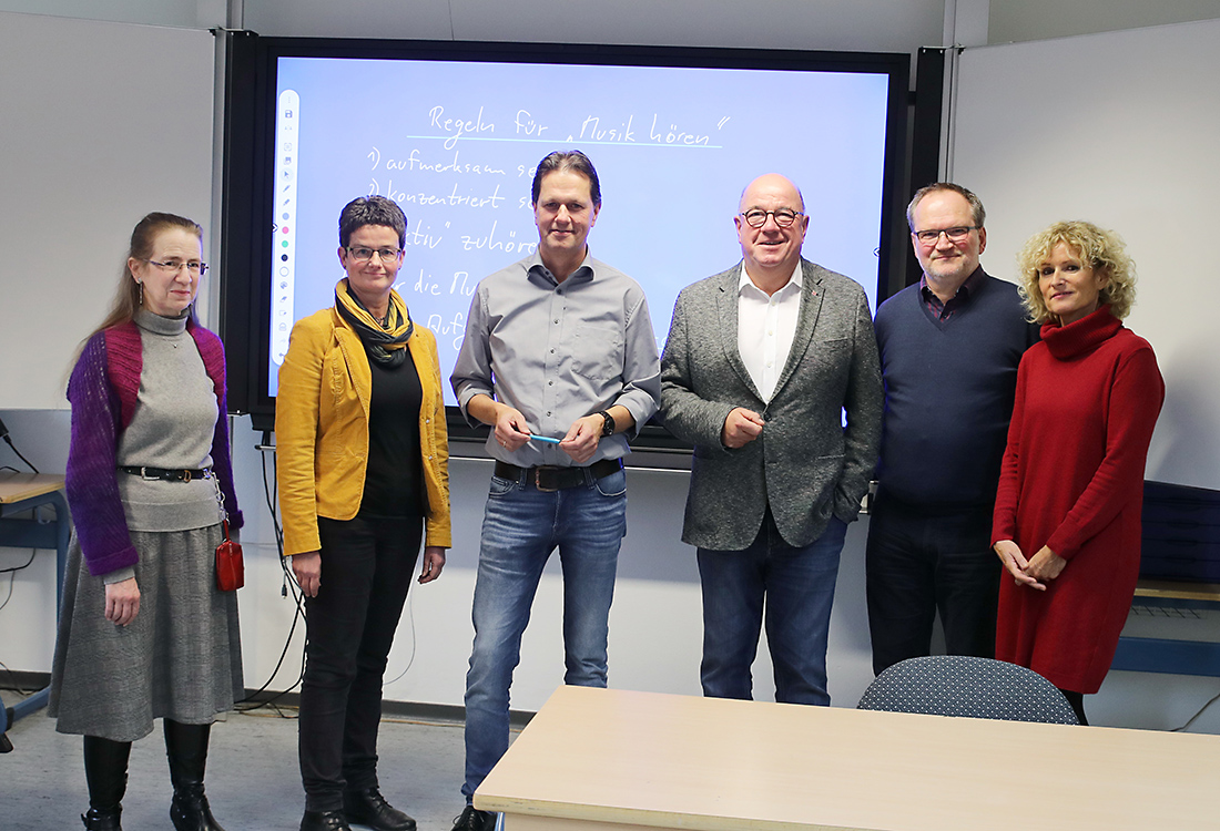 „Das Kreidezeitalter ist somit beendet“, konstatiert Ralf Zimmermann, Schulleiter der Realschule kürzlich. Alle Kreidetafeln wurden in den Herbstferien abmontiert und durch riesige Bildschirme mit schwenkbaren Whiteboard Tafeln ersetzt. Die Lehrkräfte werden durch den Hersteller geschult, um das breite Spektrum der Möglichkeiten nutzen zu können. Es ist schon eine deutliche Umstellung auf das neue System, die aber alle Lehrkräfte sehr positiv und interessiert angehen. Den Schülern gefällt es auch, da sie längst mit diesen Medien durch ihre eigenen Smartphones und Tablets aufgewachsen und vertraut sind. Nun können sie ihre Referate mittels PowerPoint-Präsentation halten. Auch das Abspielen von Filmen sowie interaktive Aktionen und vieles mehr ist möglich. Die Gestaltung des Unterrichts bietet in dieser lernförderlichen Umgebung neue pädagogische Formen des individuellen Lehrens und Lernens.