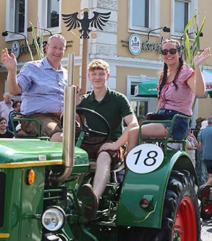 Bunt und ideenreich zeigten sich die Teilnehmer, die sich hinter Zugführer Jens Ruhland eingereiht hatten. Zuerst die Kutsche des neuen Erntepaares. Es folgten Dorfgemeinschaften, Landwirtschaftsfahrzeuge, Vereine, das Ernteschützen-Paar, Schulen sowie Nachbarschaften wie der Löher Hof. Ihr Weg führte von der Marienfelder Straße über die Zeitstraße ins Altdorf. Von da aus ging es vorbei am Höher Heimatmuseum und die Drabenderhöher Straße hinunter bis zum Kreisverkehr. Der Zug endete am Siebenbürgerplatz. Viele Menschen säumten die Straßen. An allen Tagen gab parallel zum Erntedankfest eine kleine Kirmes.
